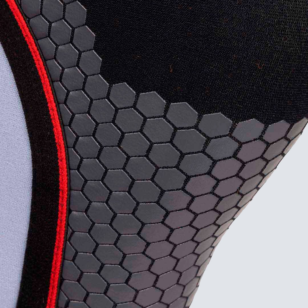 La versión 0.2 de las rodilleras Hex Tech cuentan con un diseño mejorado con tiras de goma que aportan un mayor agarre y sujeción, evitando de esta manera que se deslicen por la pierna mientras haces ejercicio.