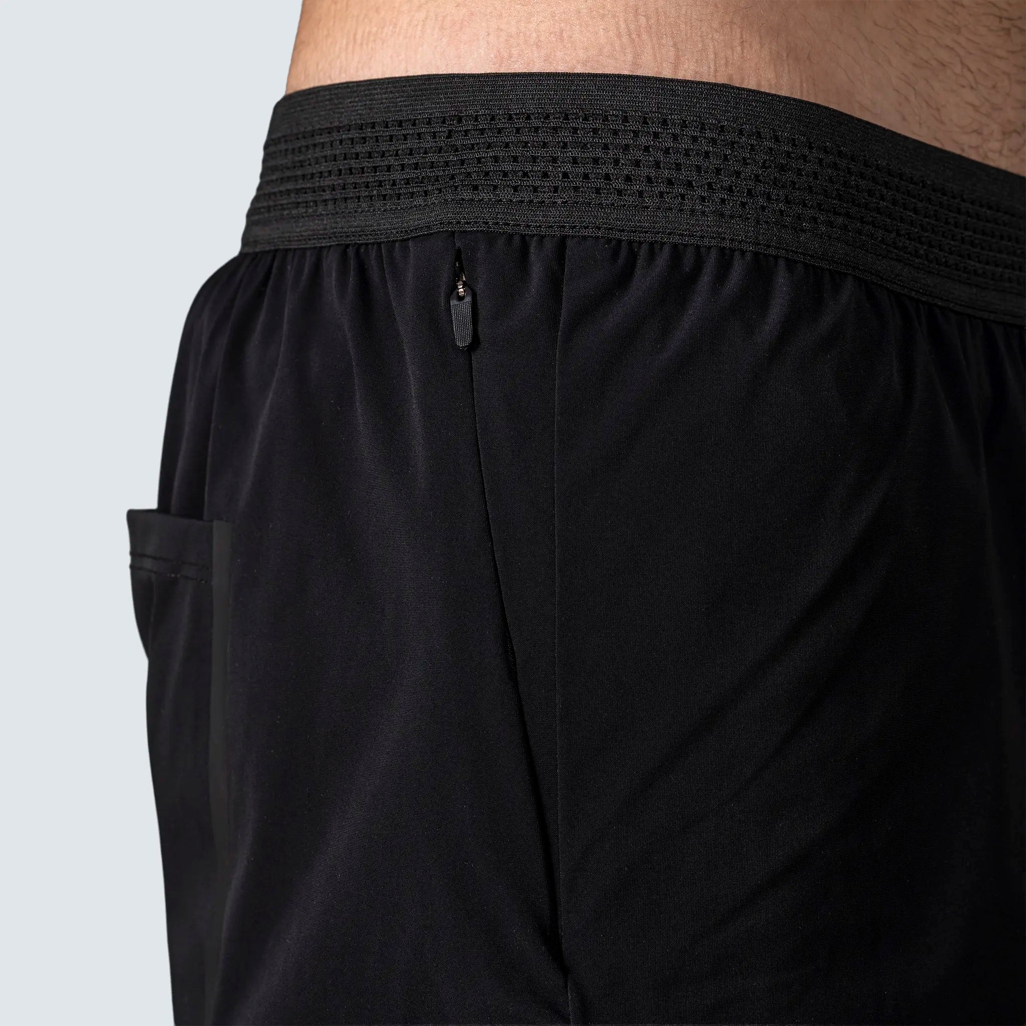 La cintura elástica de 5 cm incluye un cordón plano interior para un ajuste seguro. El tejido principal es una mezcla de poliéster y elastano, con costuras planas que reducen la irritación. Se ha añadido una abertura lateral con dobladillo termosellado y 3 cm extra en el tiro para mantener holgura en la entrepierna.