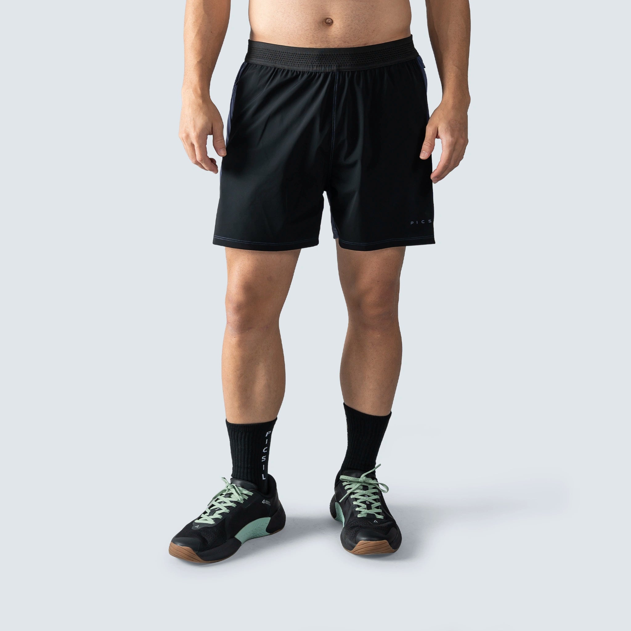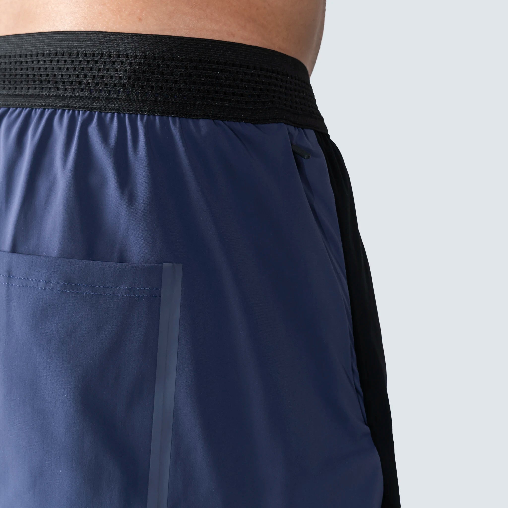 La cintura elástica de 5 cm incluye un cordón plano interior para un ajuste seguro. El tejido principal es una mezcla de poliéster y elastano, con costuras planas que reducen la irritación. Se ha añadido una abertura lateral con dobladillo termosellado y 3 cm extra en el tiro para mantener holgura en la entrepierna.