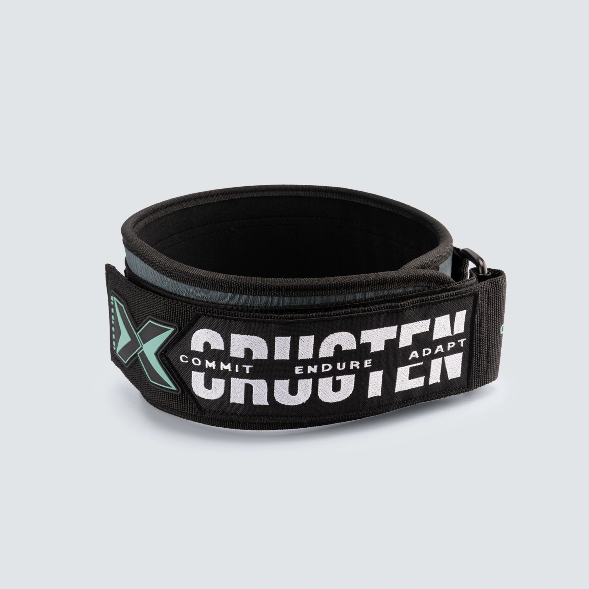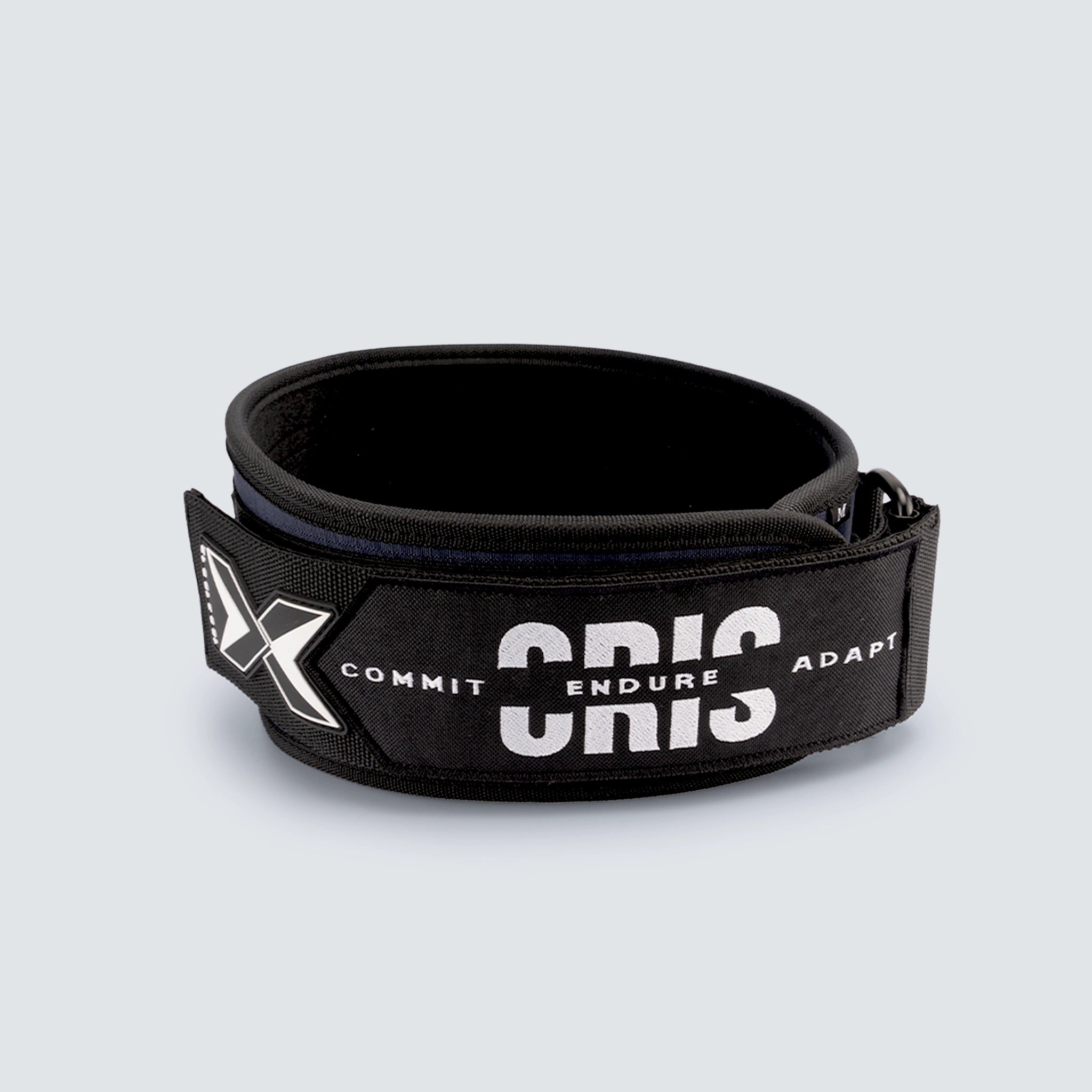 Cinturón lumbar personalizado diseñado para proteger tu core en los levantamientos más pesados. Cumple con el estándar oficial de competición. En la personalización se mantiene "Commit Endure Adapt".