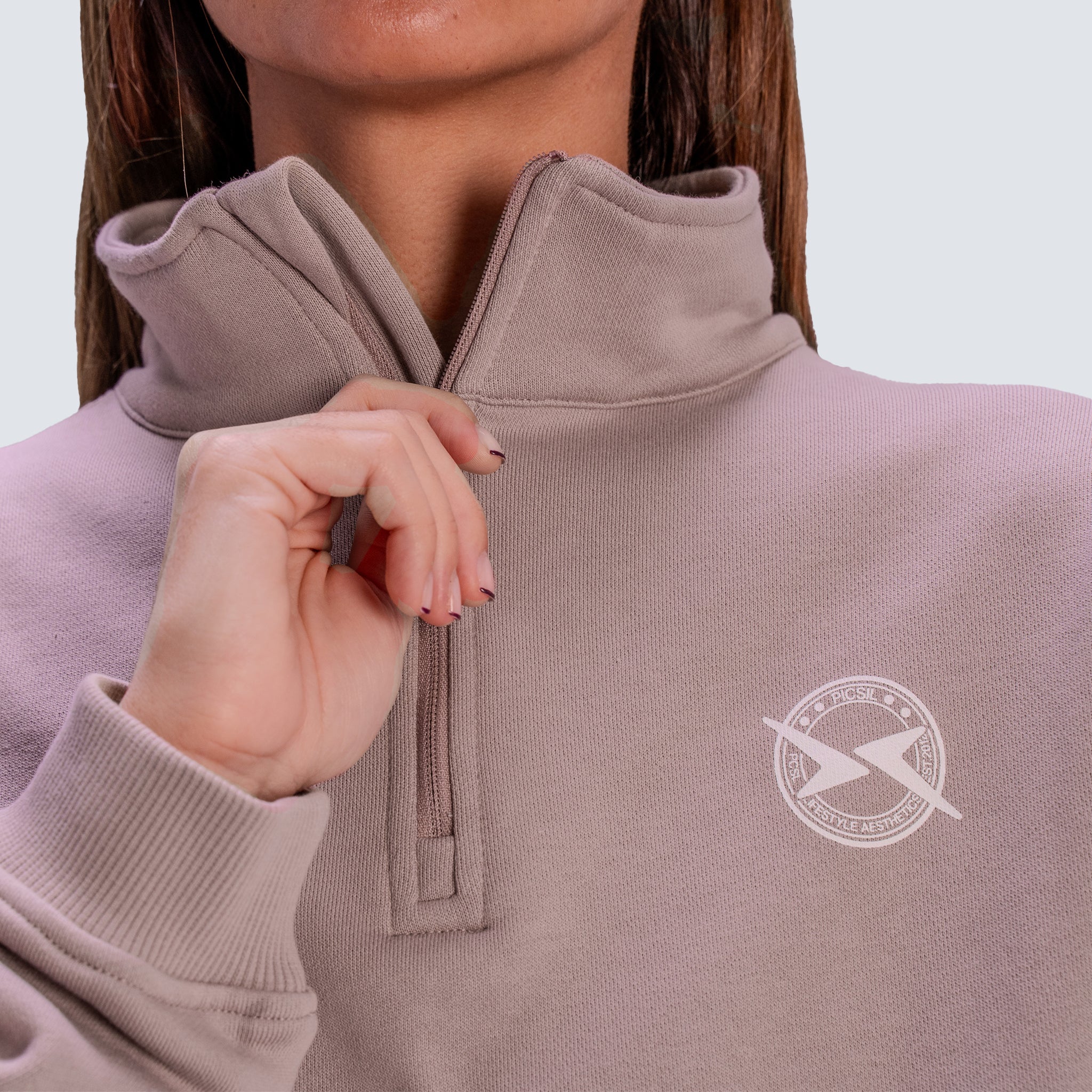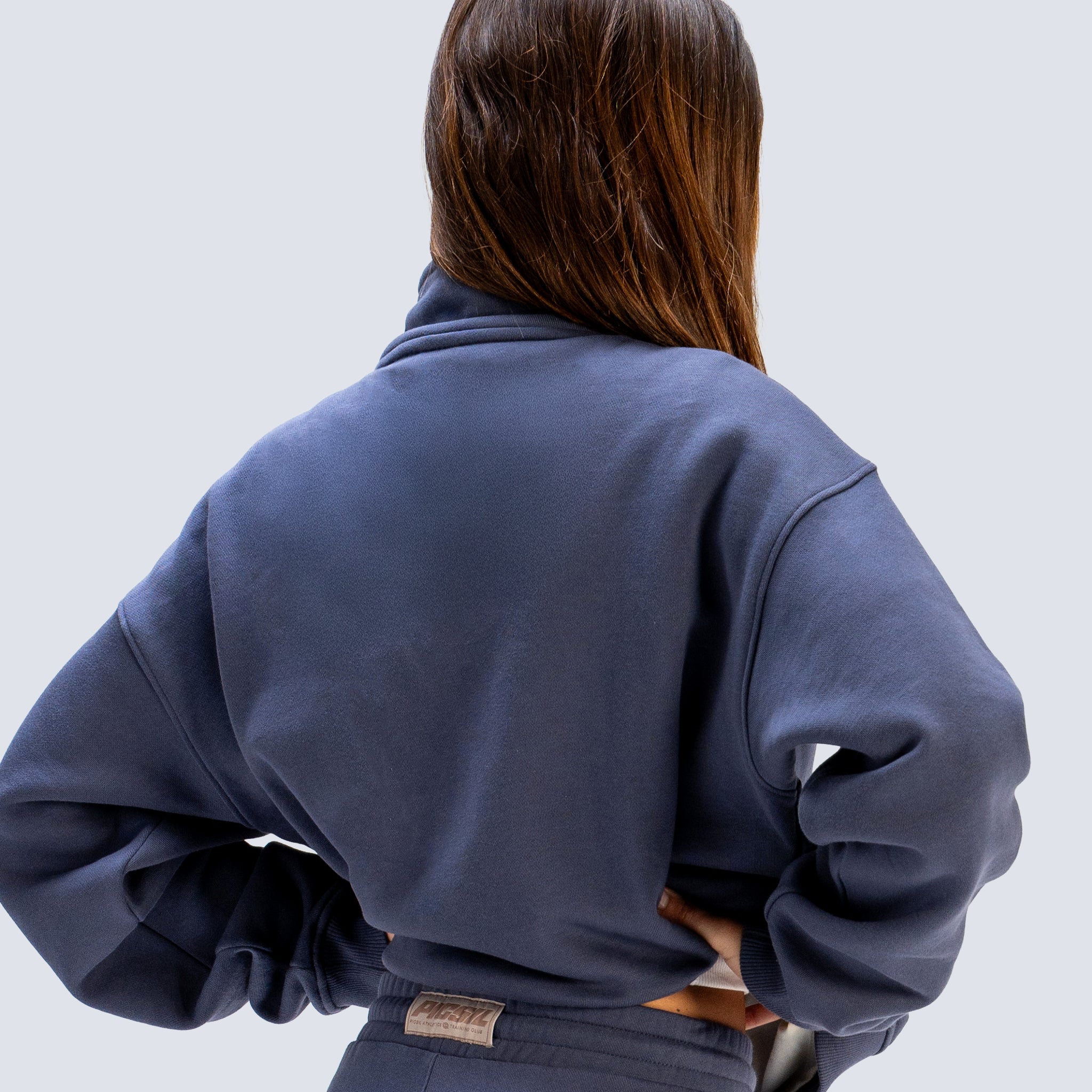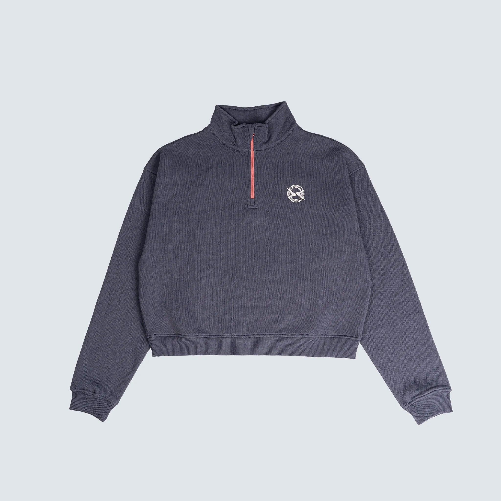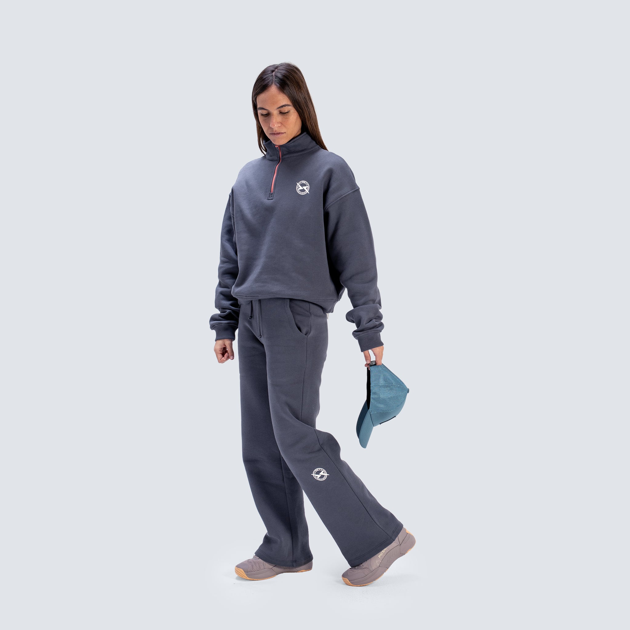 Sudadera de mujer con cremallera half zip diseñada para el uso diario: ir a la oficina, moverte por la ciudad o llevarla encima después de entrenar. Está confeccionada en 100% algodón orgánico portugués certificado, lo que aporta suavidad al contacto con la piel, buena gestión del sudor y una caída natural con fit regular.