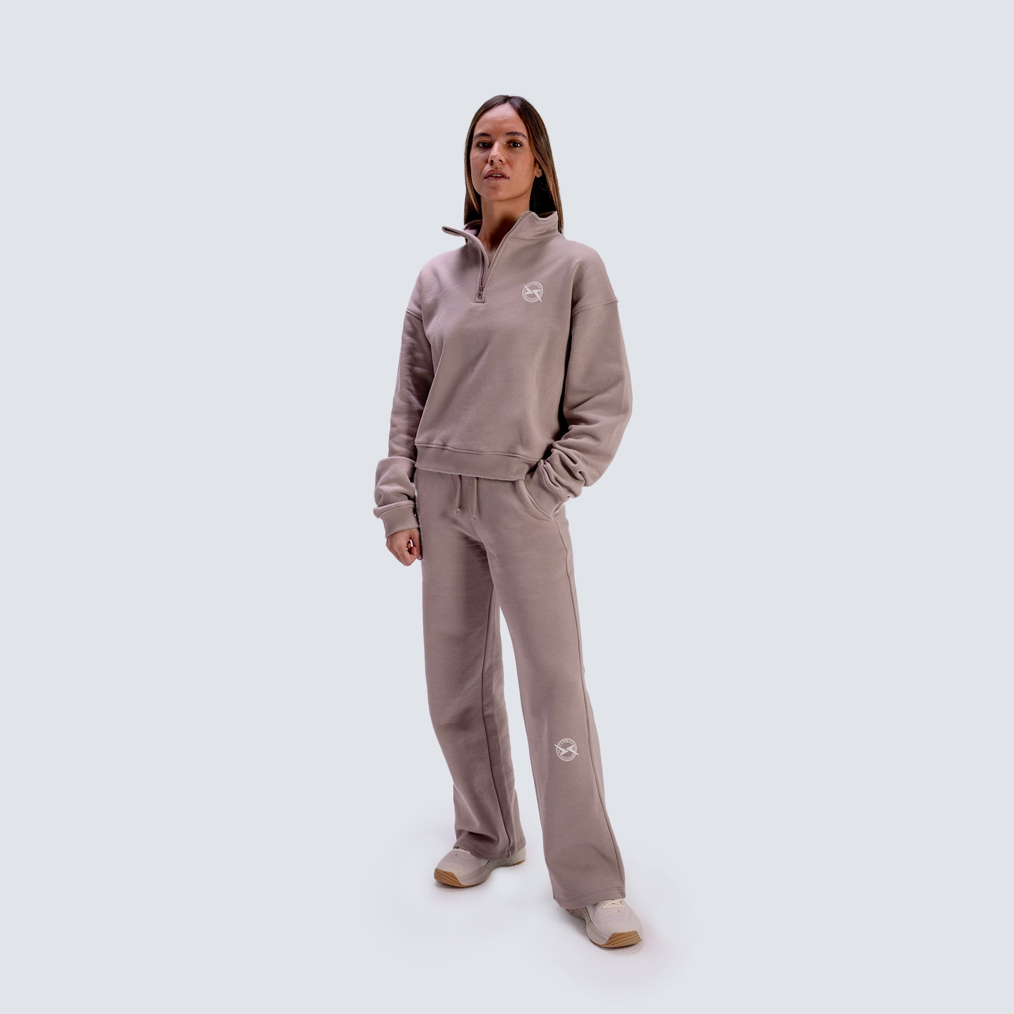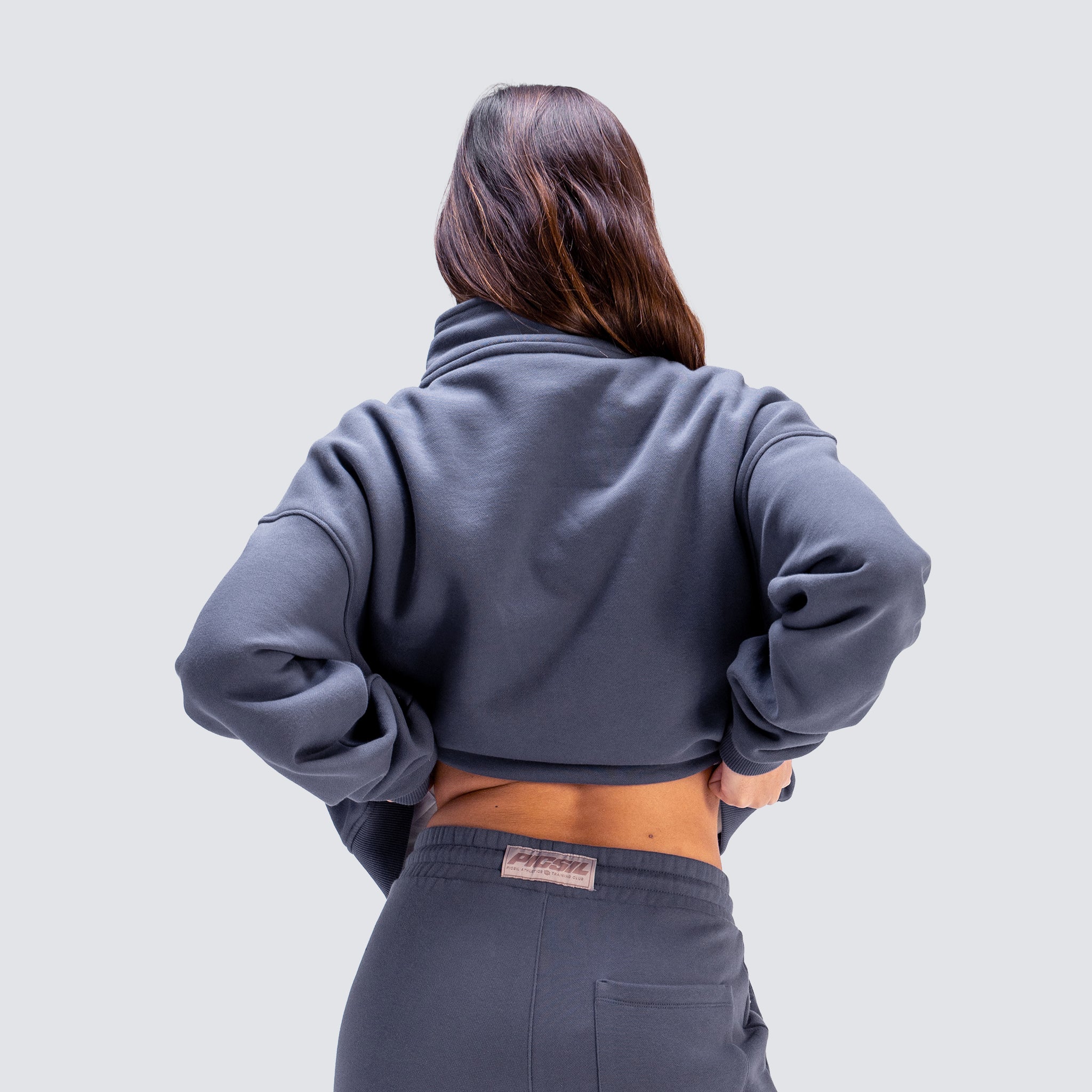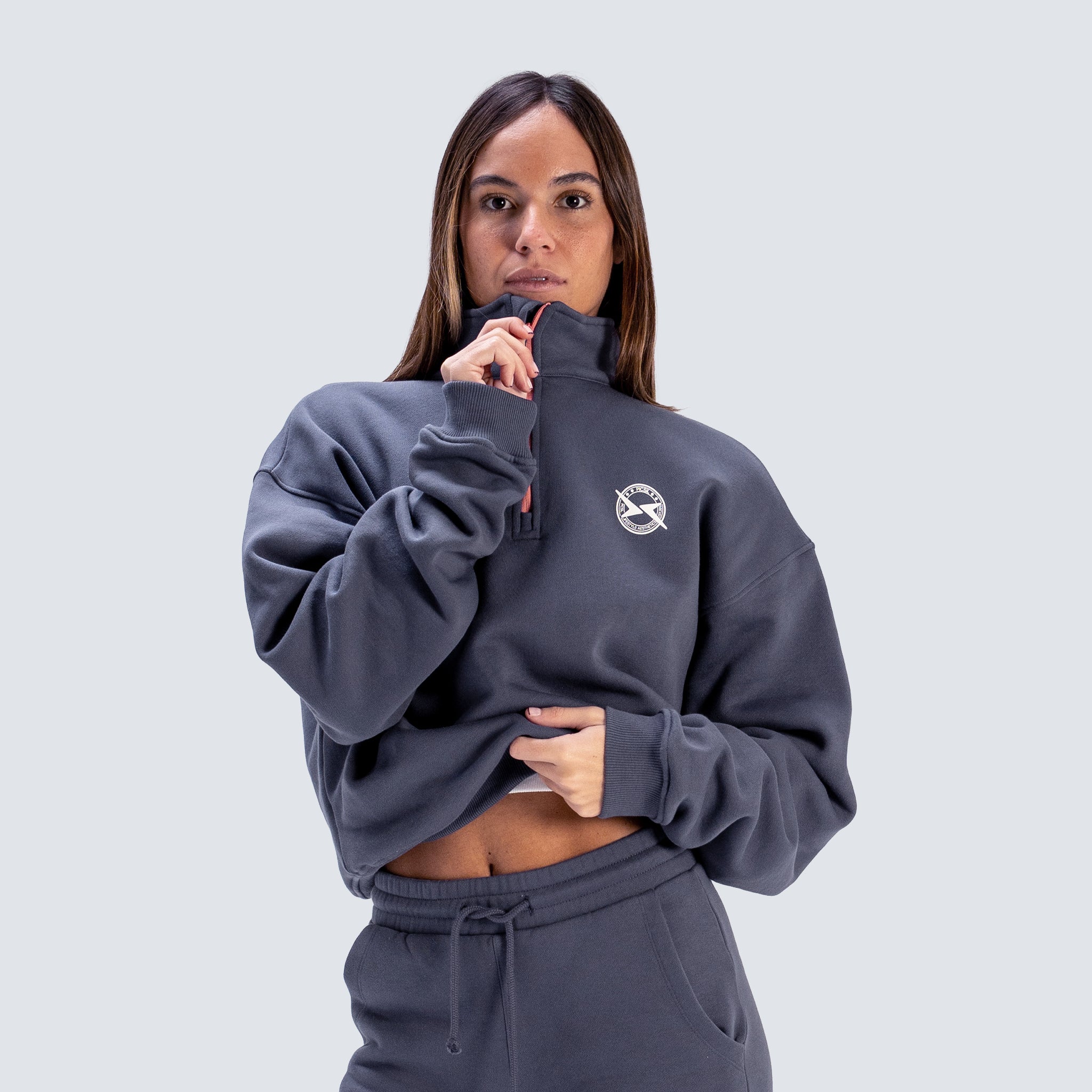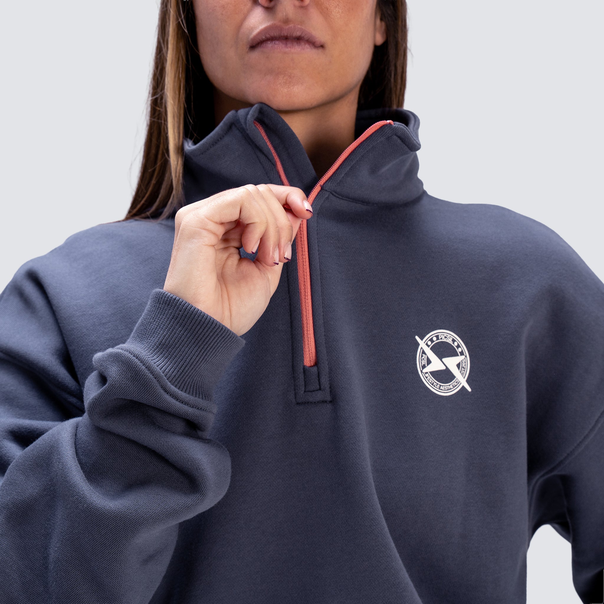 Sudadera de mujer con cremallera half zip diseñada para el uso diario: ir a la oficina, moverte por la ciudad o llevarla encima después de entrenar. Está confeccionada en 100% algodón orgánico portugués certificado, lo que aporta suavidad al contacto con la piel, buena gestión del sudor y una caída natural con fit regular.